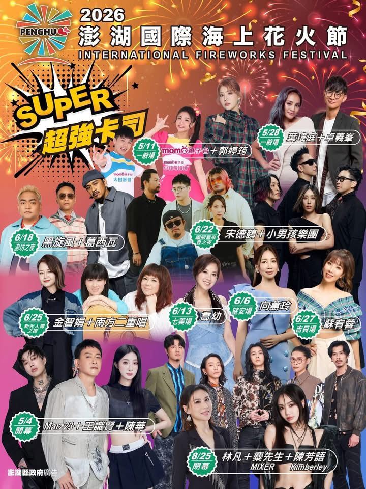 2026澎湖國際海上花火節((七龍珠主題))隆重登場!!!! 試放場:04/20.27(一) 開幕:05/04(一) 閉幕:08/25(二) 5月~6/25,每週一、四,晚間21:00施放(地點:觀音亭) 6/30~8/25每週二,晚間21:00施放(地點:觀音亭) #離島場次:6/6望安 6/13七美 6/27吉貝 20:00施放(地點:觀音亭) 地方限定場:6/20湖西鄉 7/4西嶼 7/18白沙鄉